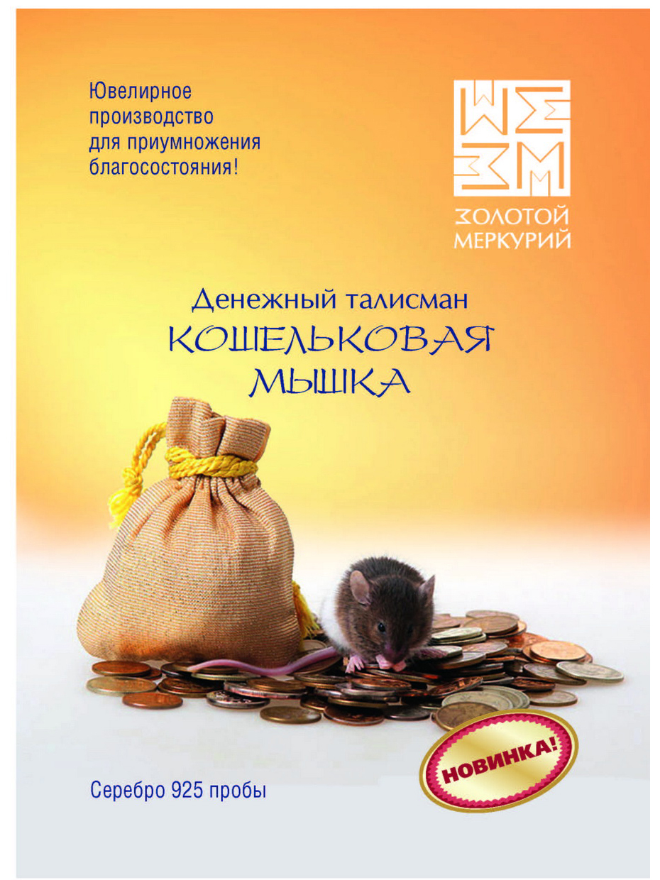Золотой Меркурий Сувенир ювелирный Талисман Мышь кошельковая