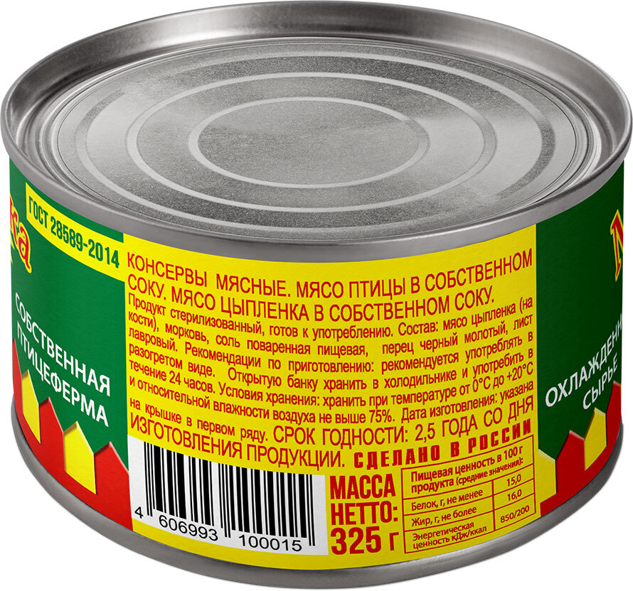 Мясо цыпленка в собственном соку Золотой петушок 325 гр 6 штук