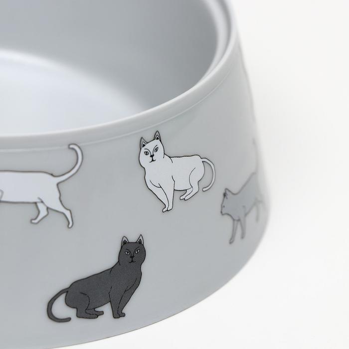 Миска для животны* "Мур-мяу" 0,3л двойная на подставке, серая
