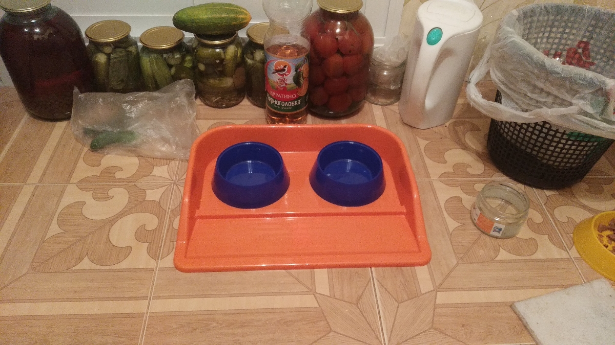 Миски и лоток, 0,3 л 41*30*6 см, оранжвый лоток - синие миски