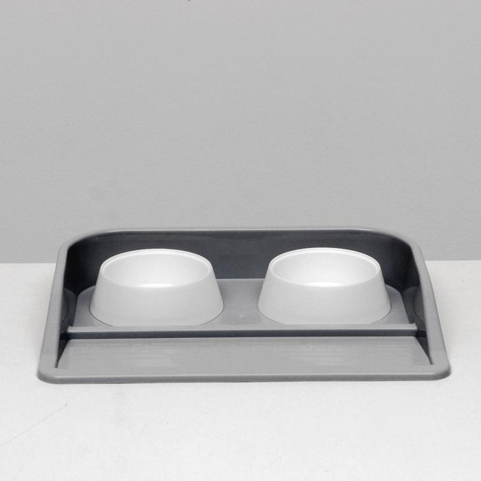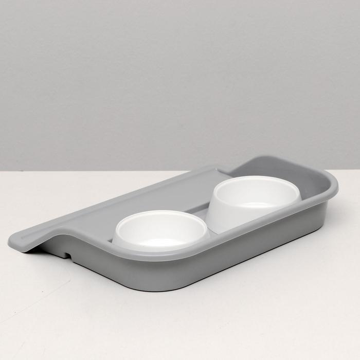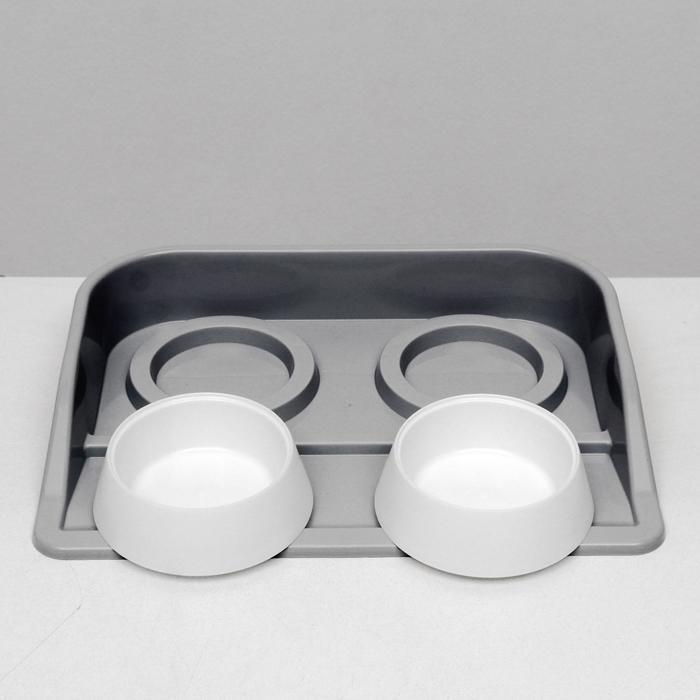 Миски с лотком "Феликс" 0,3 л, 41 x 30 x 6 см, серый лоток, белые миски