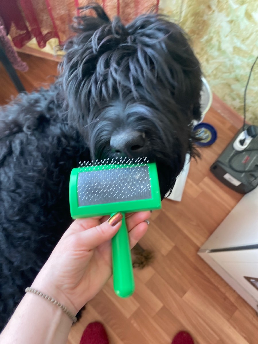 Пуходерка щетка для собак/кошек большая без капли 10,5*16 см, пищевой пластик, черная
