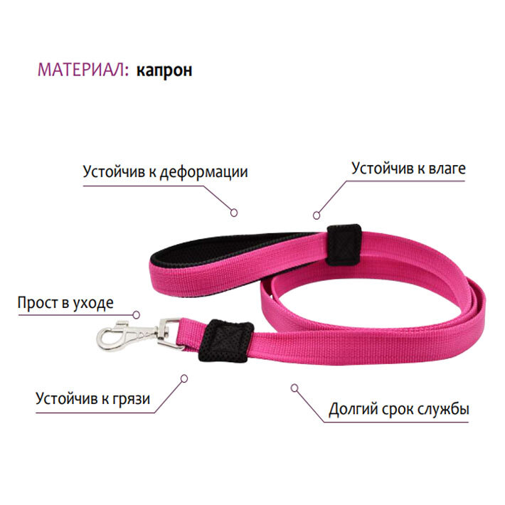 Поводок для собак капрон/3D сетка длина 2м, ширина 25мм, мягкая ручка, малиновый