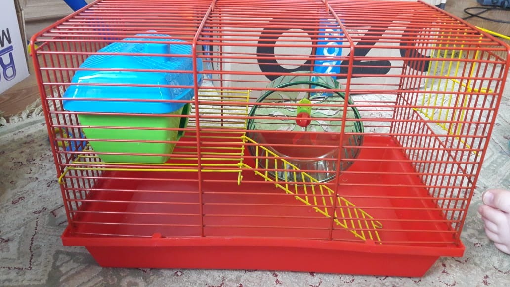 Клетка для грызунов ЗооМарк "Гризли-3ж", цвет: красный поддон, синяя решетка. 230ж
