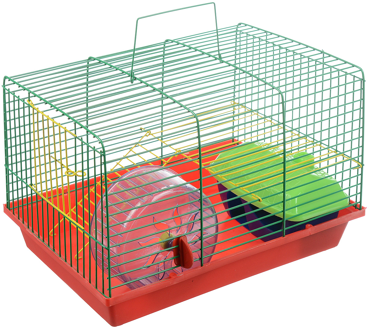 Клетка для птиц "ЗооМарк", цвет: желтый поддон, красная решетка, 35 х 28 х 44,5 см