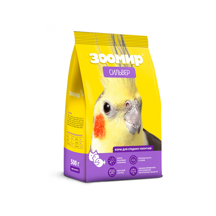ЗООМИР Сильвер Корм для средних попугаев, 500гр