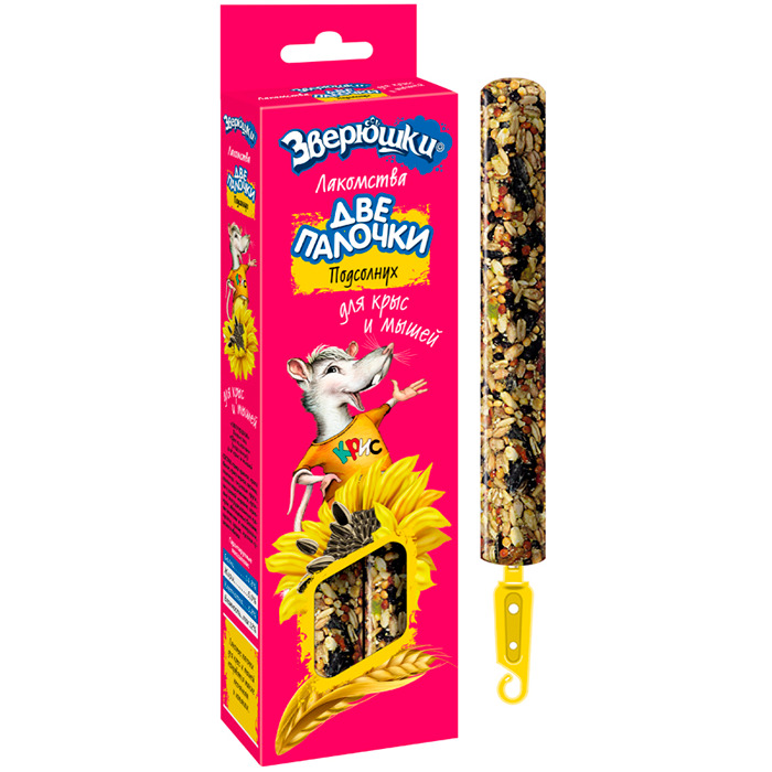 ЗООМИР Зверюшки Две палочки для крыс и мышей с подсолнухом, 2шт по 40гр