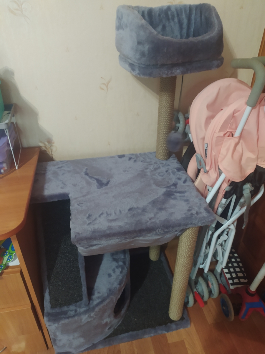 Когтеточка с лежанкой для кошек, с игрушкой. 35х35х50см. Белая.