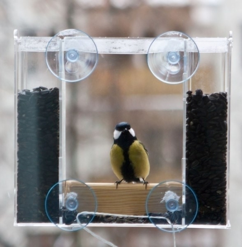 Большая кормушка для птиц на окно с присосками "Конгур"