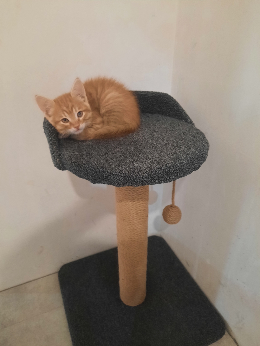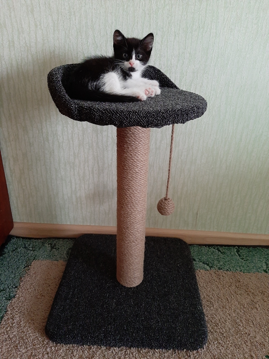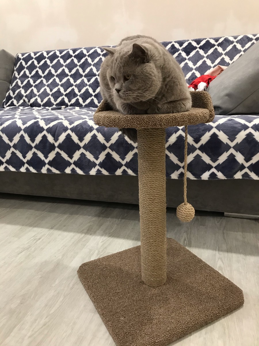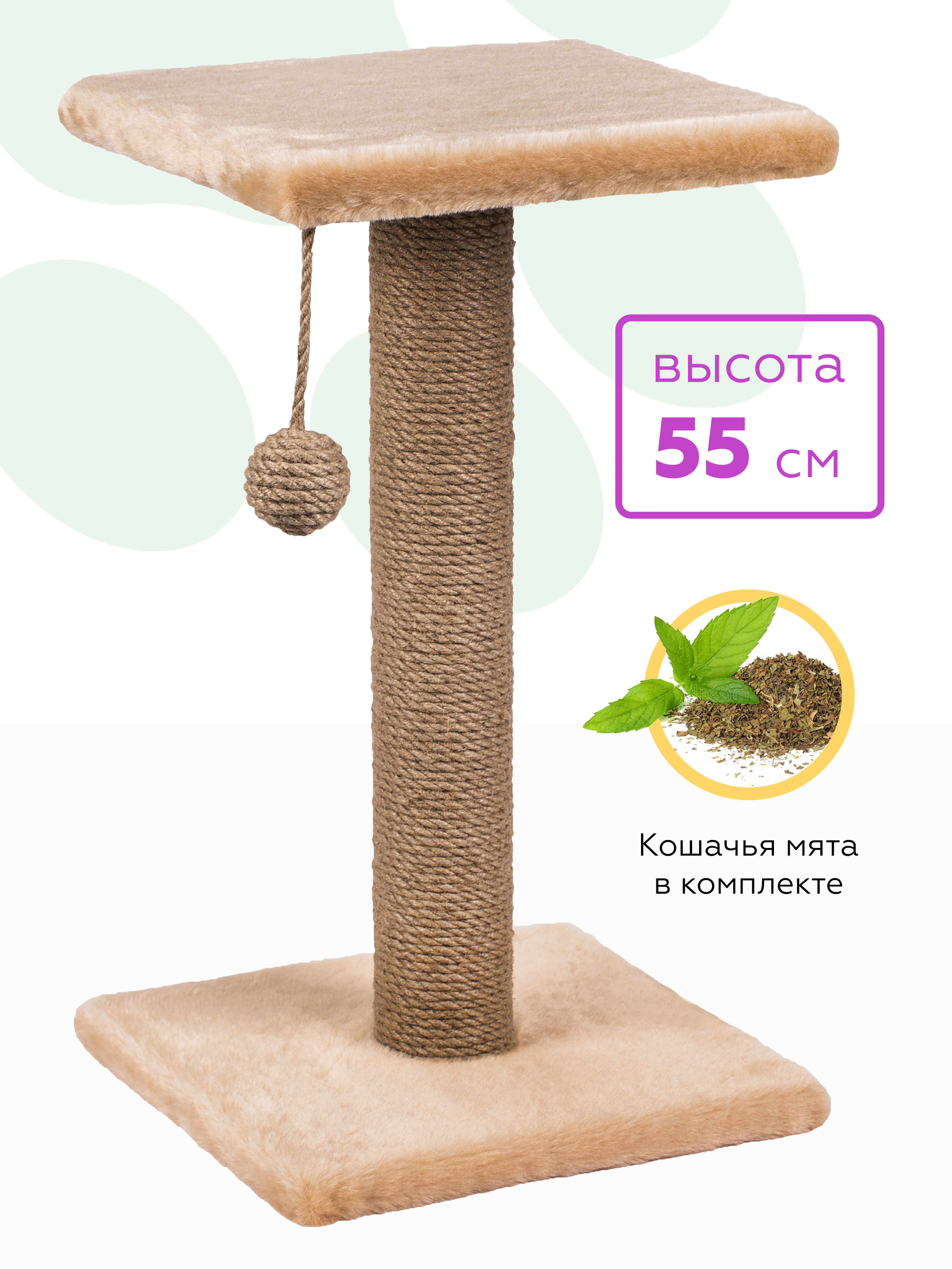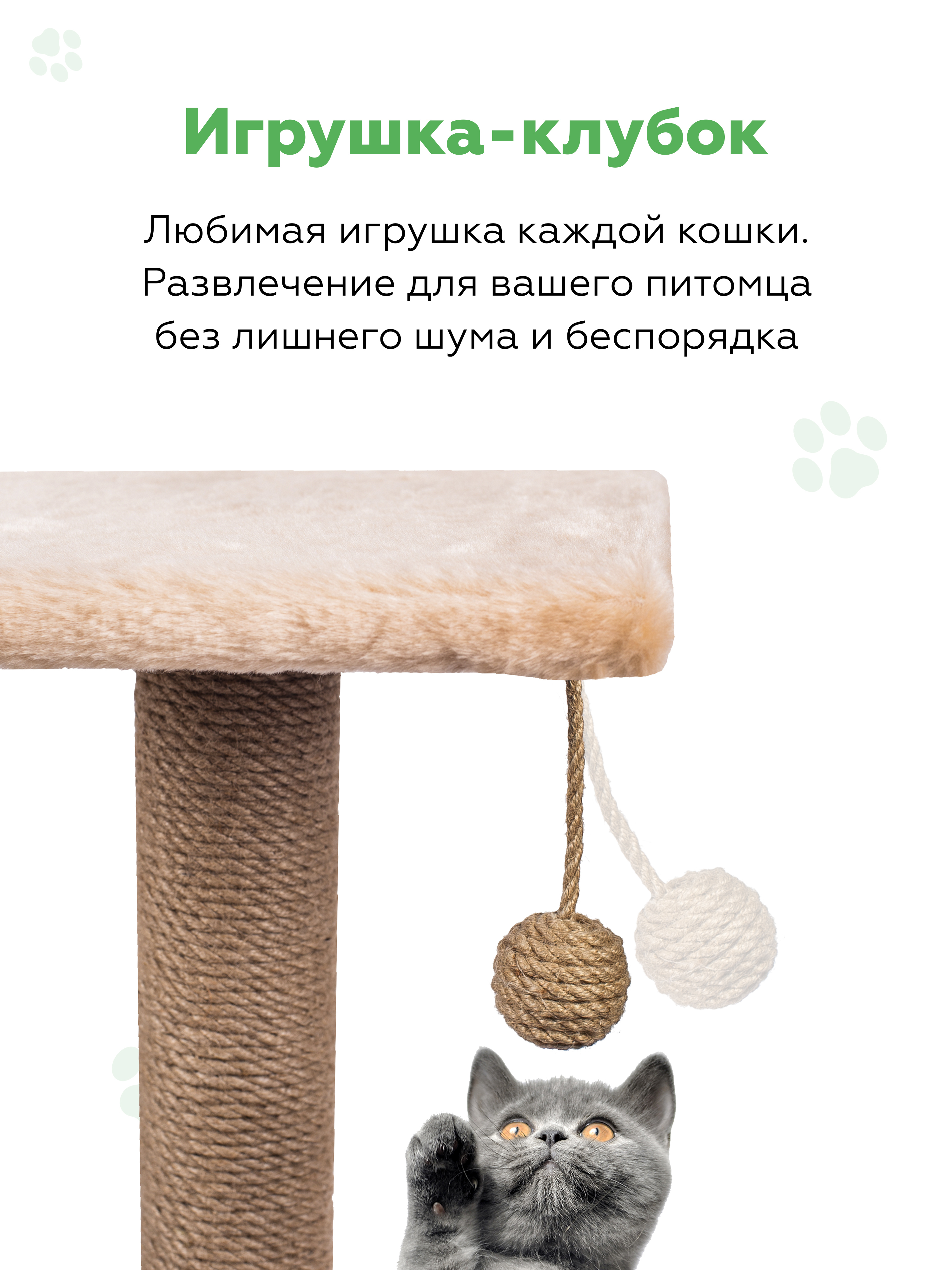 Когтеточка столбик с лежанкой для кошки + игрушка клубок