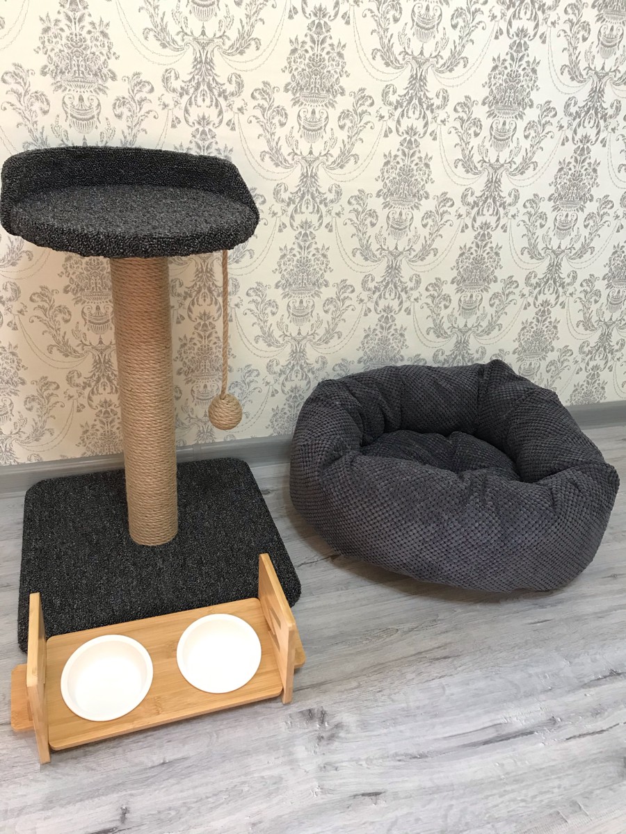 Когтеточка для кошки с лежанкой + игрушка клубок. 30х30х55см