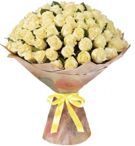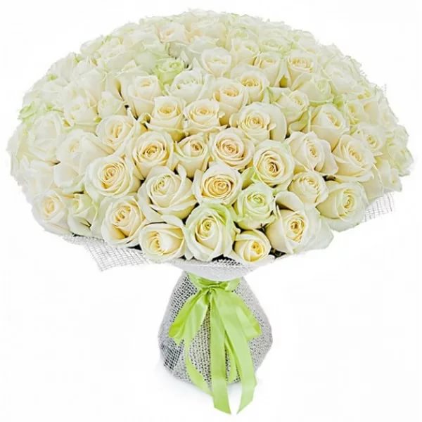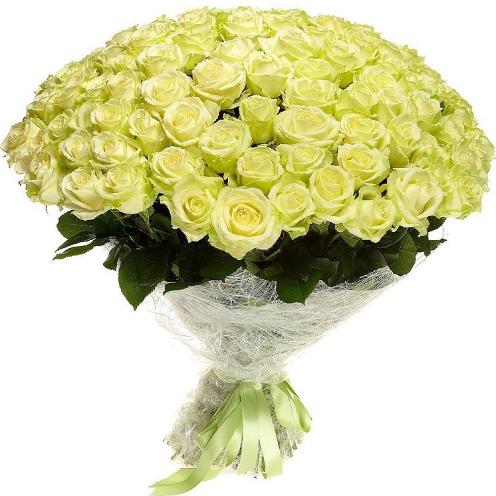 Розы Вайт Наоми (White Naomi) 80 см. Букет роз 101 шт. (Эквадор)