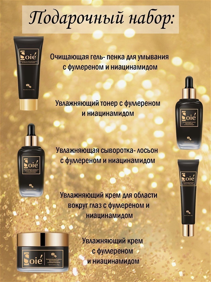 SOIE Набор омолаживающих средств (гель для умывания, тонер, сыворотка, эмульсия, крем)