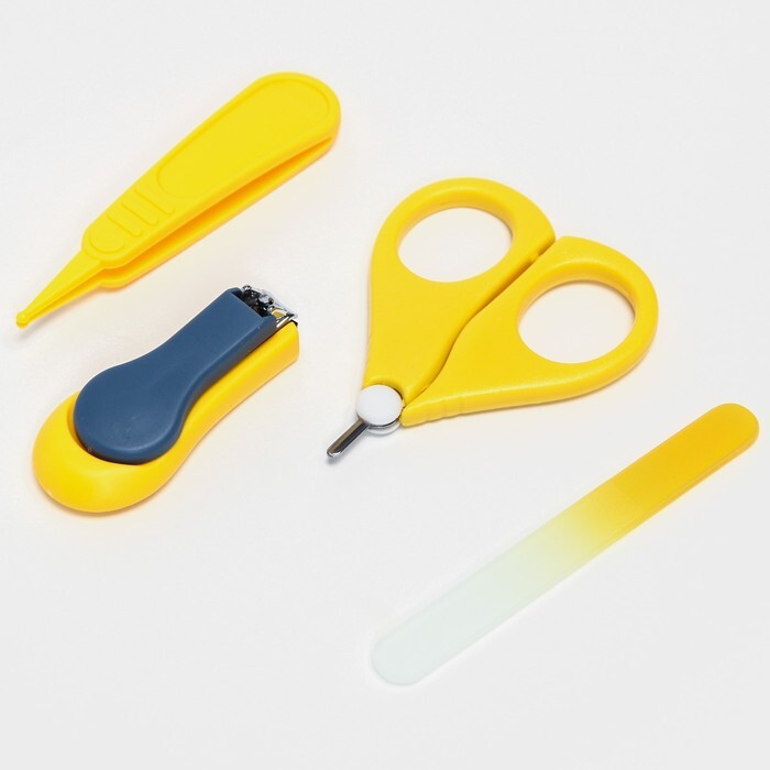 Детский маникюрный набор (ножницы, книпсер, пилка, пинцет), цвет желтый