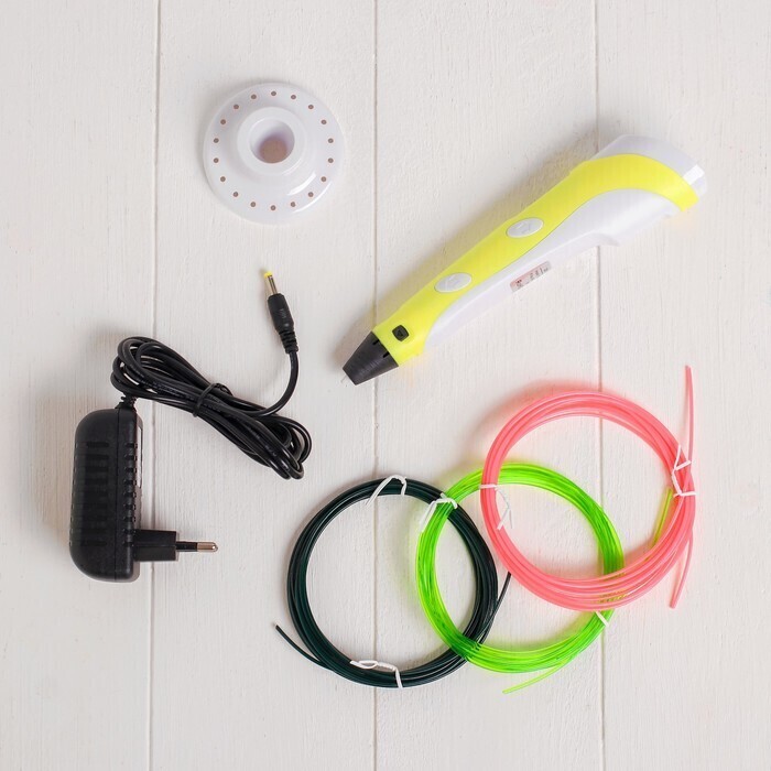 3D ручка с дисплеем, набор PLA пластика, цвет жёлтый