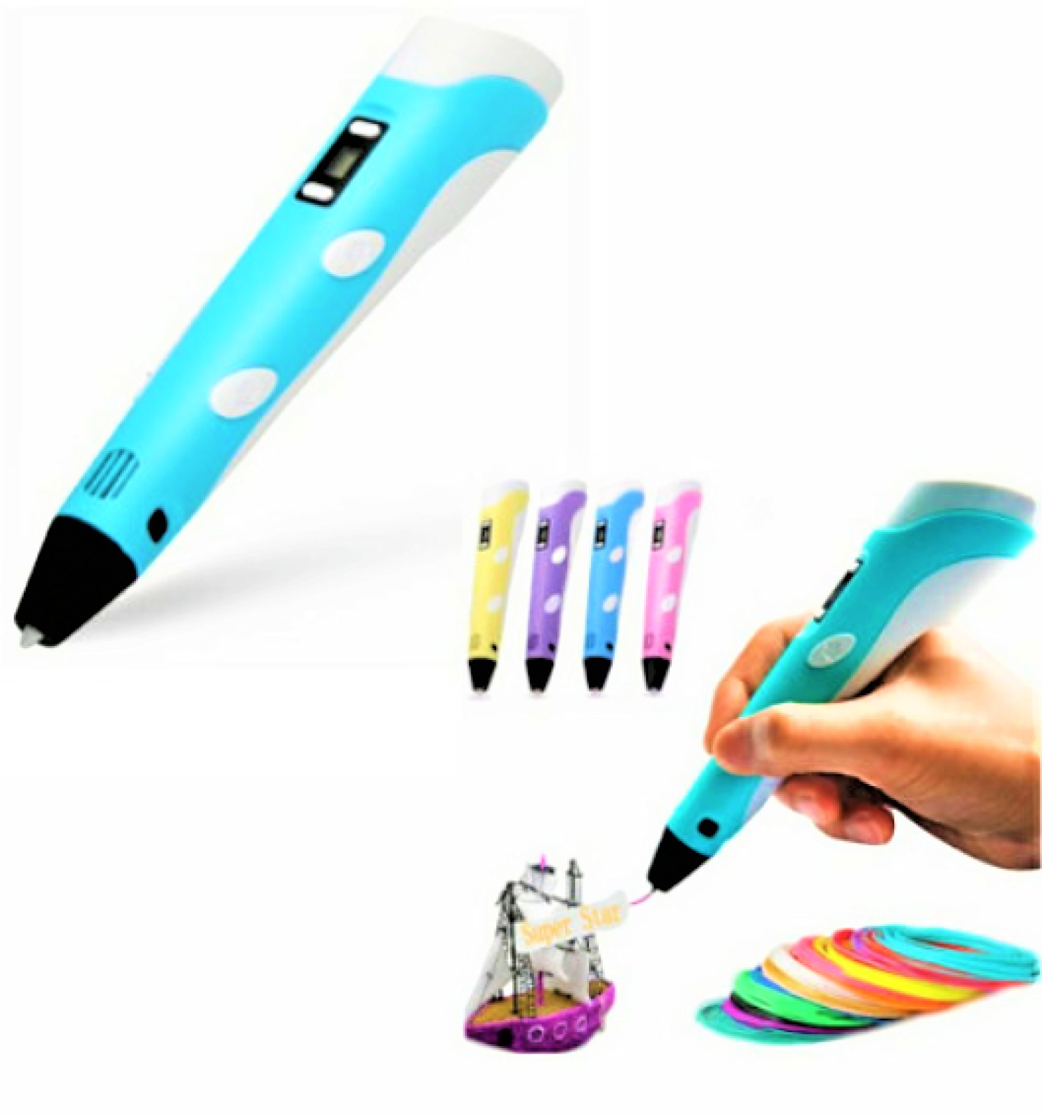 3D ручка с дисплеем, набор PLA пластика, цвет голубой