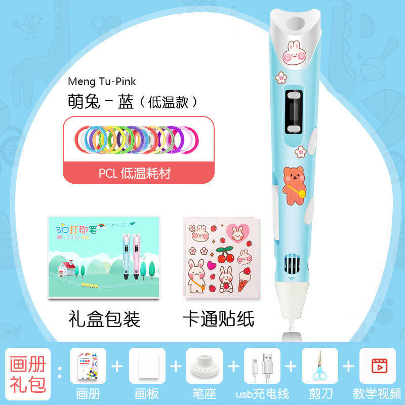 Синяя 3D-ручка Низкотемпературная защита от ожогов DIY с нитью PCL 5 м * 10 цветов
