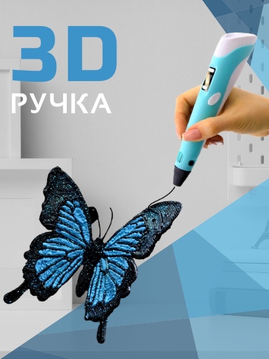 3D ручка, ручка для рисования пластиком объемных фигур, набор для творчества, голубая