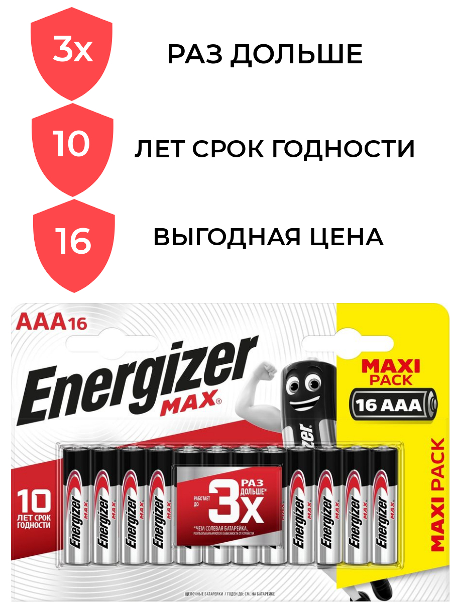 Батарейки Energizer Max, ААА 16 шт. (мизинчиковые) Уцененный товар