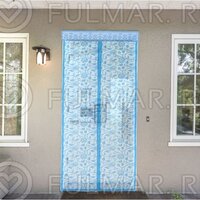 Москитная сетка на балконную и входную дверь на магнитной ленте с Цветочным узором 80х210 см Голубая