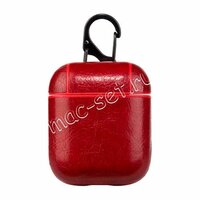 Чехол для наушников AirPods кожаный с карабином (красный)