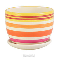 Горшок Полоска розовая 1,05л d-14см с поддоном, керамика