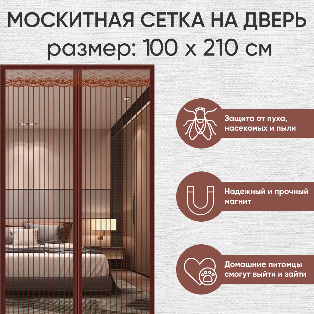 Антимоскитная сетка на магнитах, шторка от насекомых на дверь/Москитная сетка на дверь 100х210