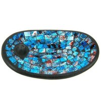 Подставка для благовоний керамическая овальная со стеклом синяя 13х21см