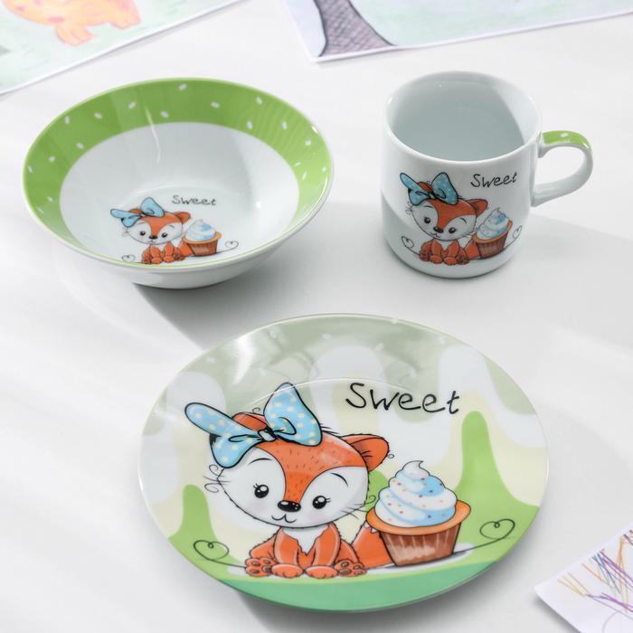 Набор детской керамической посуды для кормления малыша "Лисенок"