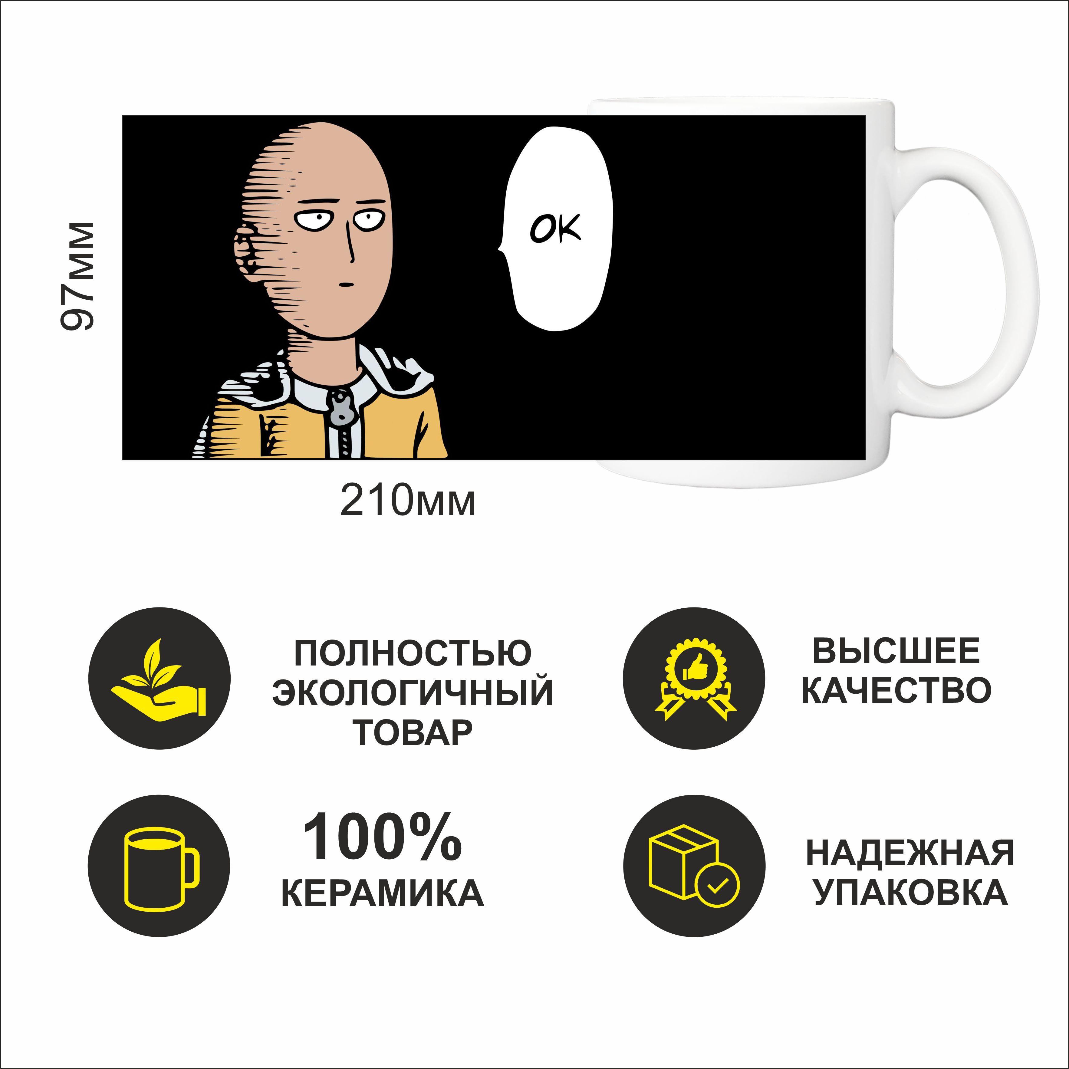 Кружка "Кружка с Аниме "Ванпанчмен" One-Punch Man Сайтама говорит ОК", 330 мл, 1 шт
