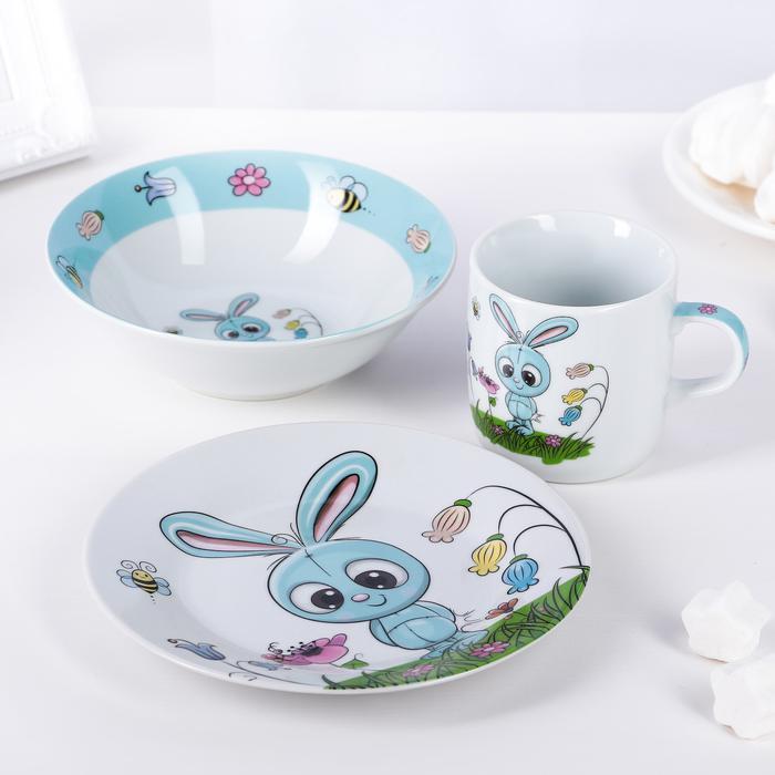Набор детской керамической посуды для кормления малыша "Крош". Уцененный товар