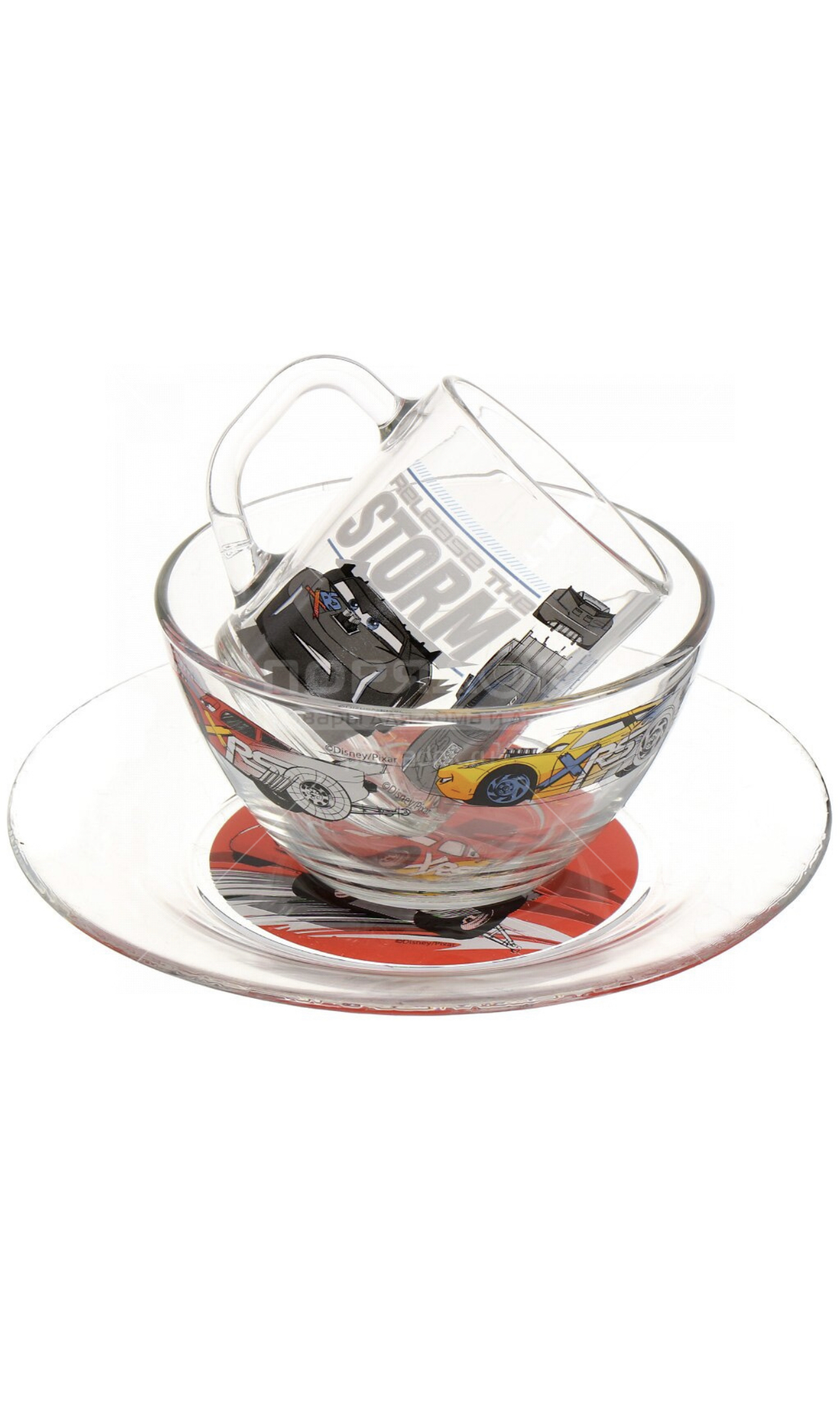 Набор детской посуды 3 в 1/LAVkids/Тачки /3 предмета/стекло