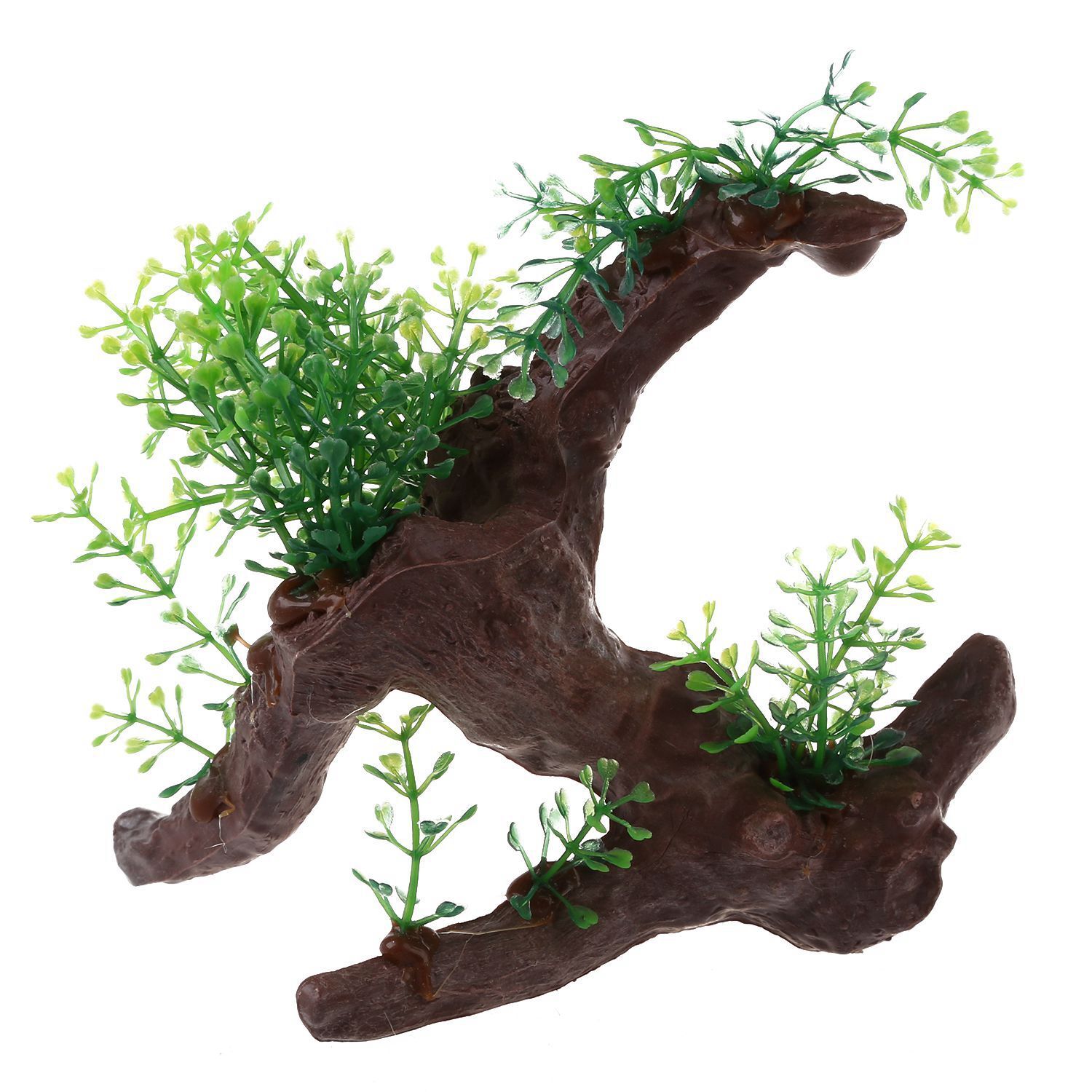 Зеленое темно-коричневое пластиковое дерево из коряги для аквариума с аквариумом 5,7 дюйма