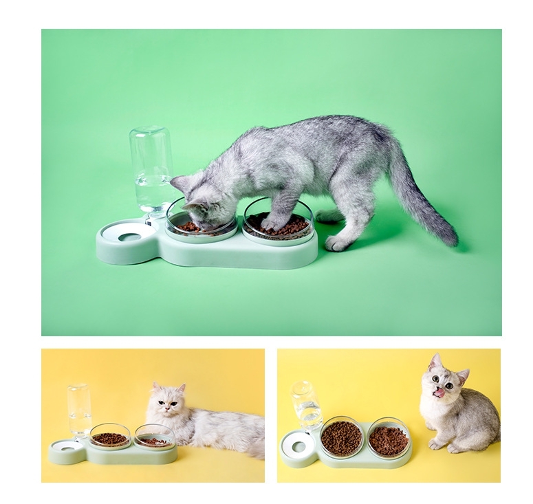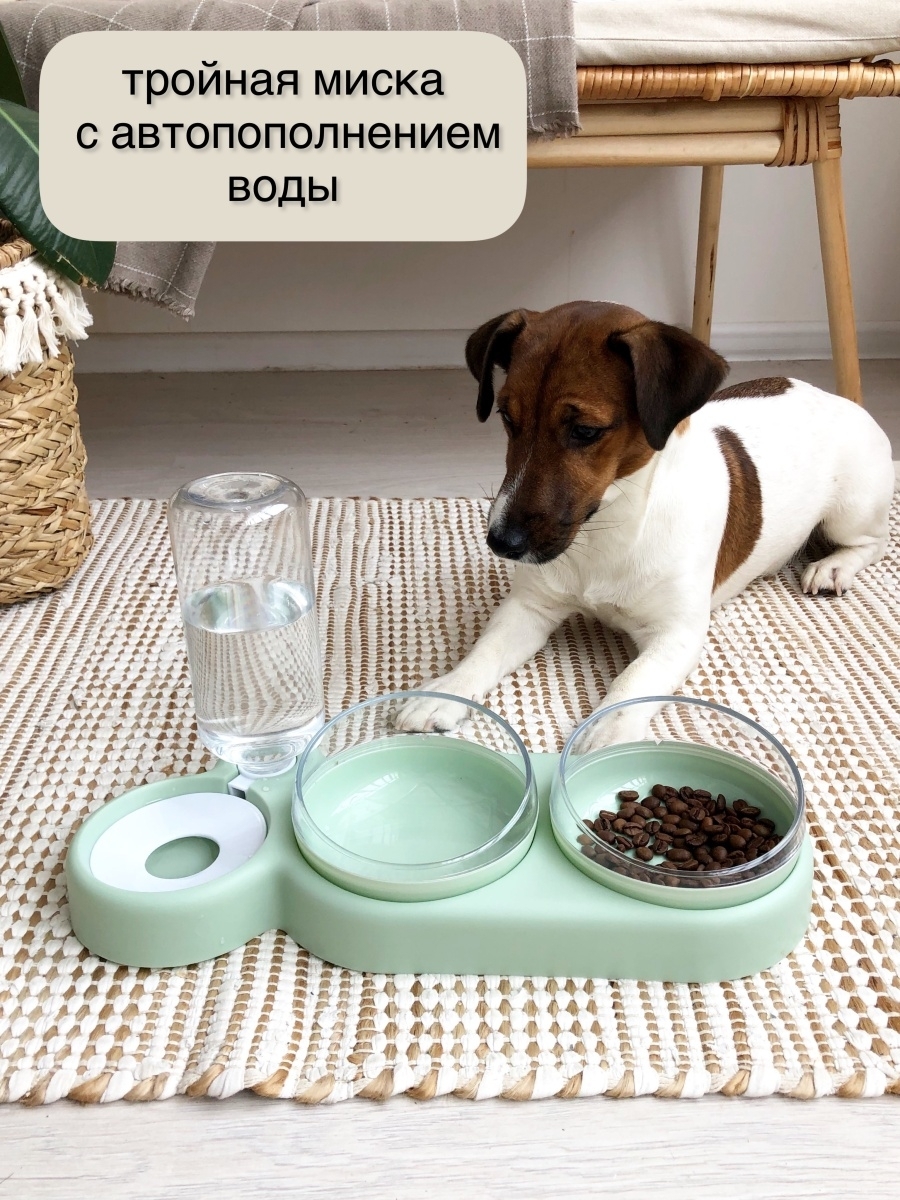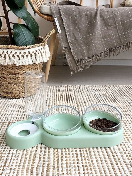 Автопоилка с мисками для кошек и собак 3 в 1 фисташковая