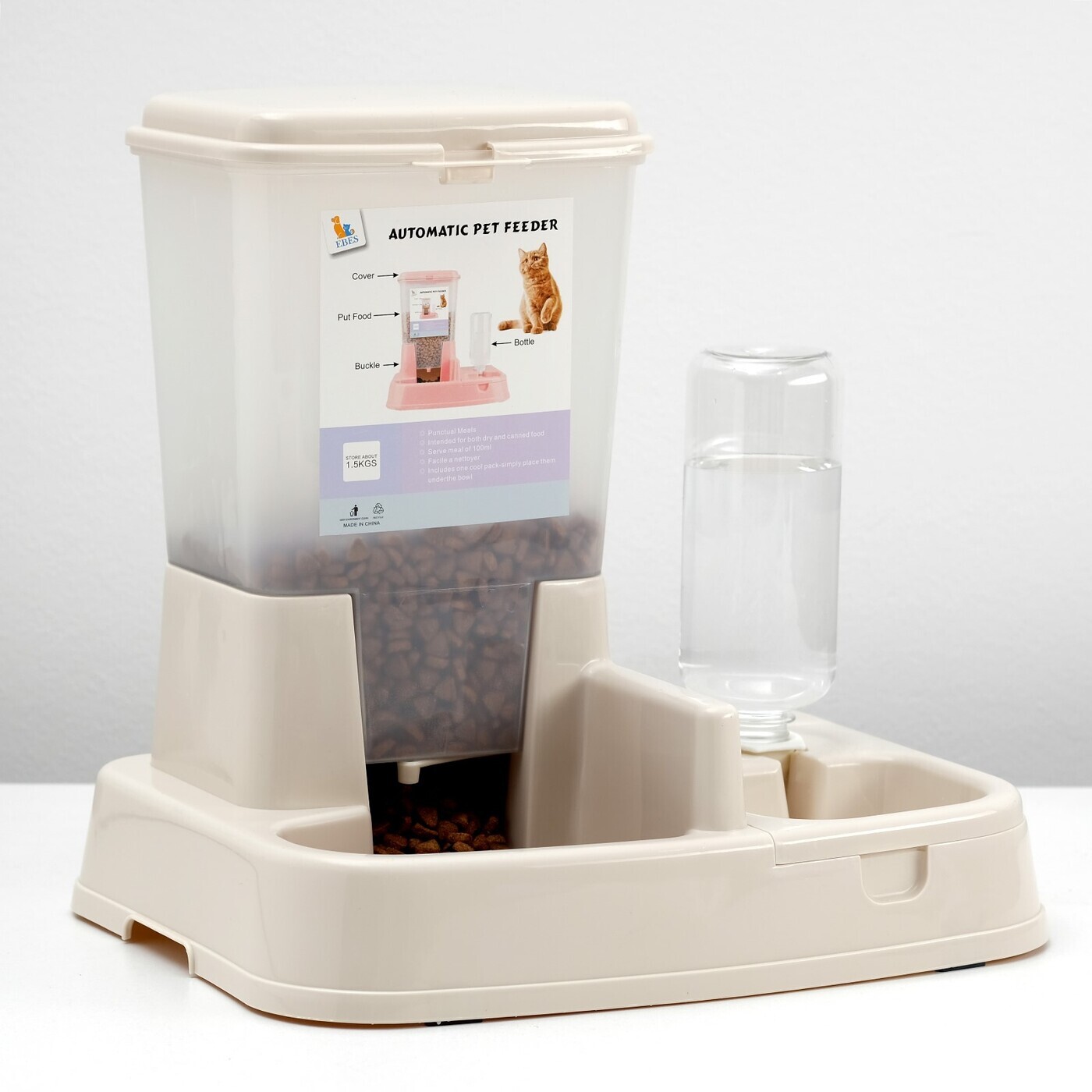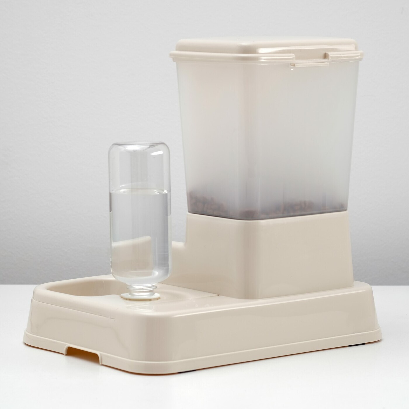 Комплекс: контейнер для корма (1,5 кг), съемная миска и поилка, бежевый
