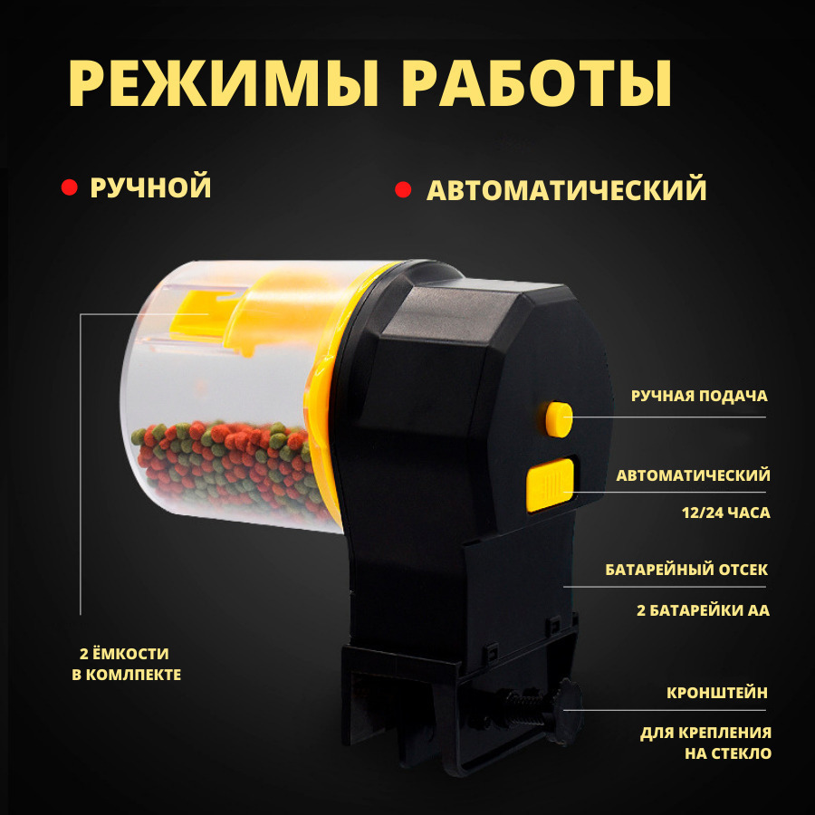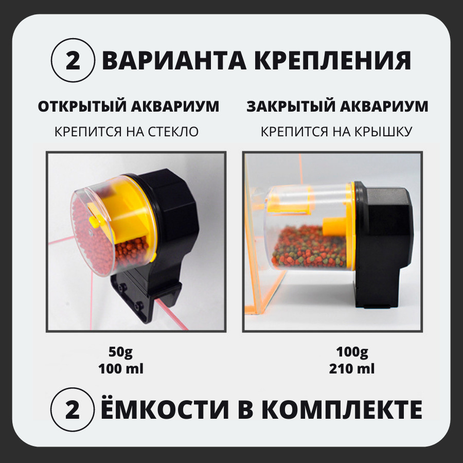 Автоматическая кормушка для рыб 50/100мл, Автокормушка для аквариума с таймером