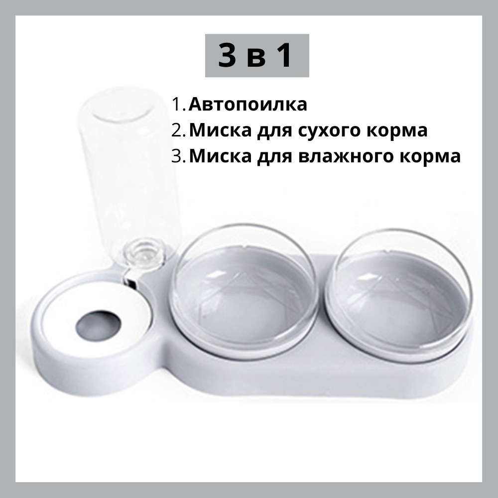 Миска для кошек 3 в 1 двойная миска с автопоилкой для кошек и мелких пород собак