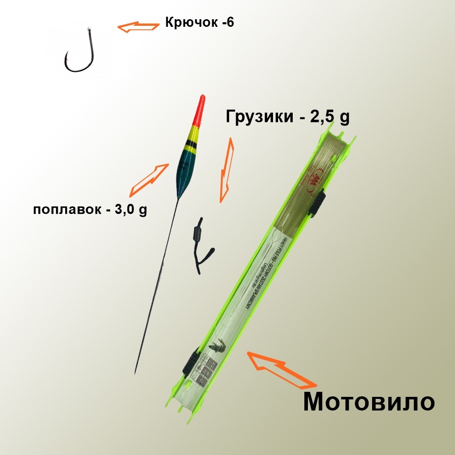 Готовая донная снасть (поплавок 3,0 g, крючок, леска, груз, мотовило) 5 шт