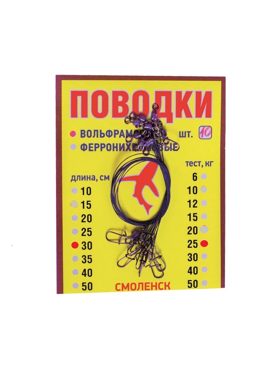 Поводки вольфрамовые 25 кг, 30см, 10 шт.