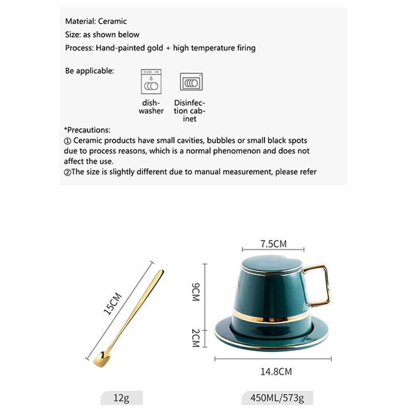 Роскошный изумруд и золотистая керамическая кофейная чашка и чайная тарелка с ложкой зеленый