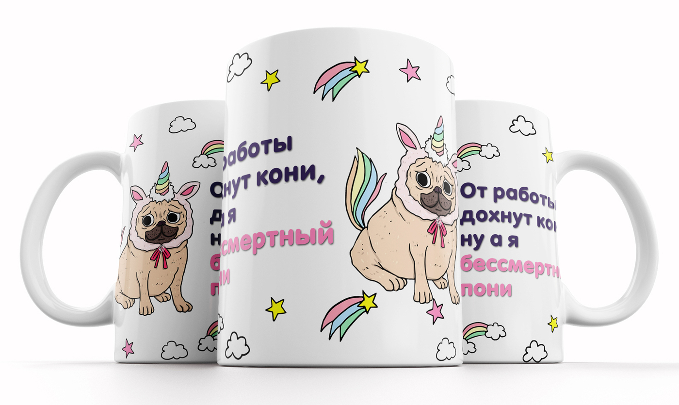 Кружка " Бессмертный пони(МОПС) с прикольным рисунком", 330 мл, 1 шт