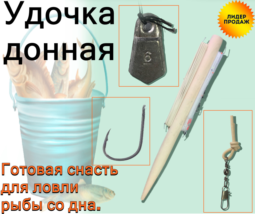 Готовая донная удочка в сборе/ мотовила для рыбалки/донная снасть / рыболовная снасть