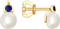 Золотые серьги шарики SOKOLOV 792056_s с жемчугом, корундами
