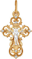 Женский золотой православный крестик с распятием SOKOLOV 121297_s с фианитами