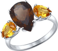 Серебряное кольцо SOKOLOV 92010999_s с раухтопазом, цитринами, размер 19 мм