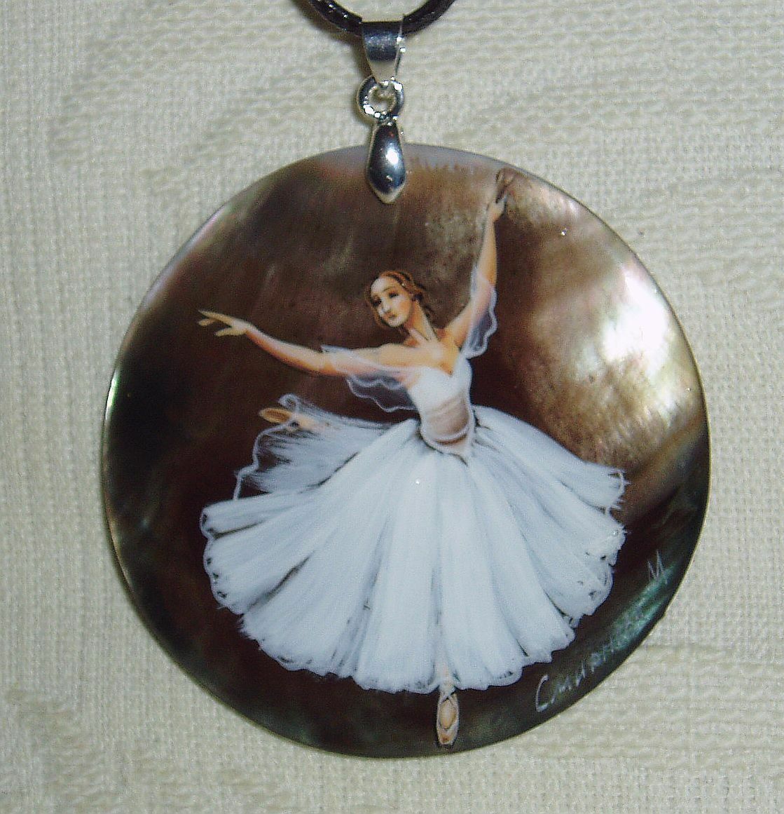 Балерина / Балет / Перламутр / Кулон / Медальон / Подвеска / Ручная работа / Живопись / Арабеск
