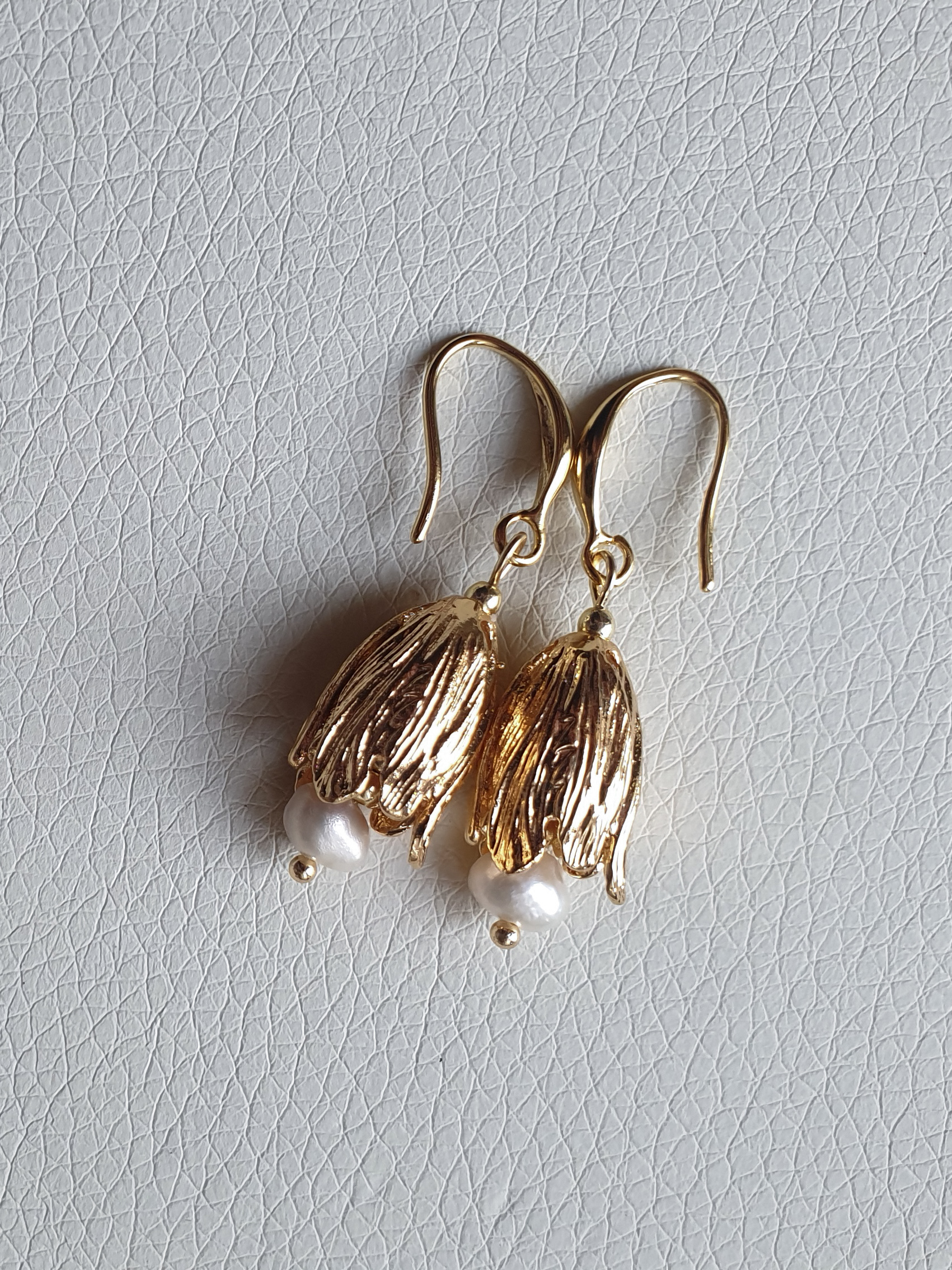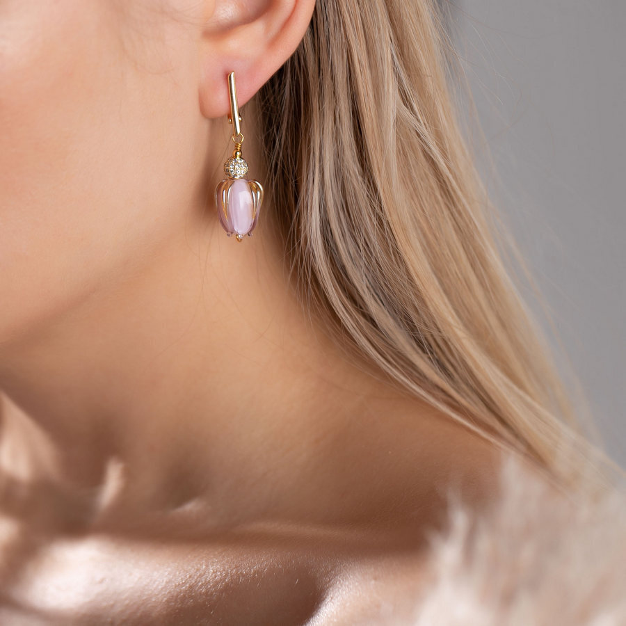 Серьги цветочные бутоны лиловые золото Bijoubykatie