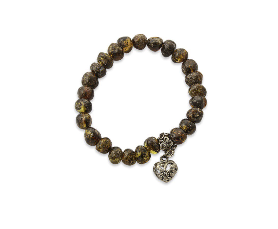 Браслет из натурального цельного янтаря темно зеленого цвета,форма мятый шар, br0003