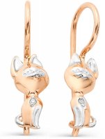 Серьги Котенок Гав с 2 бриллиантами из красного золота