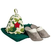 Подарочный набор 3 предмета в цветной картонной коробке (накидка д\бани и сауны муж., шапка Армейска